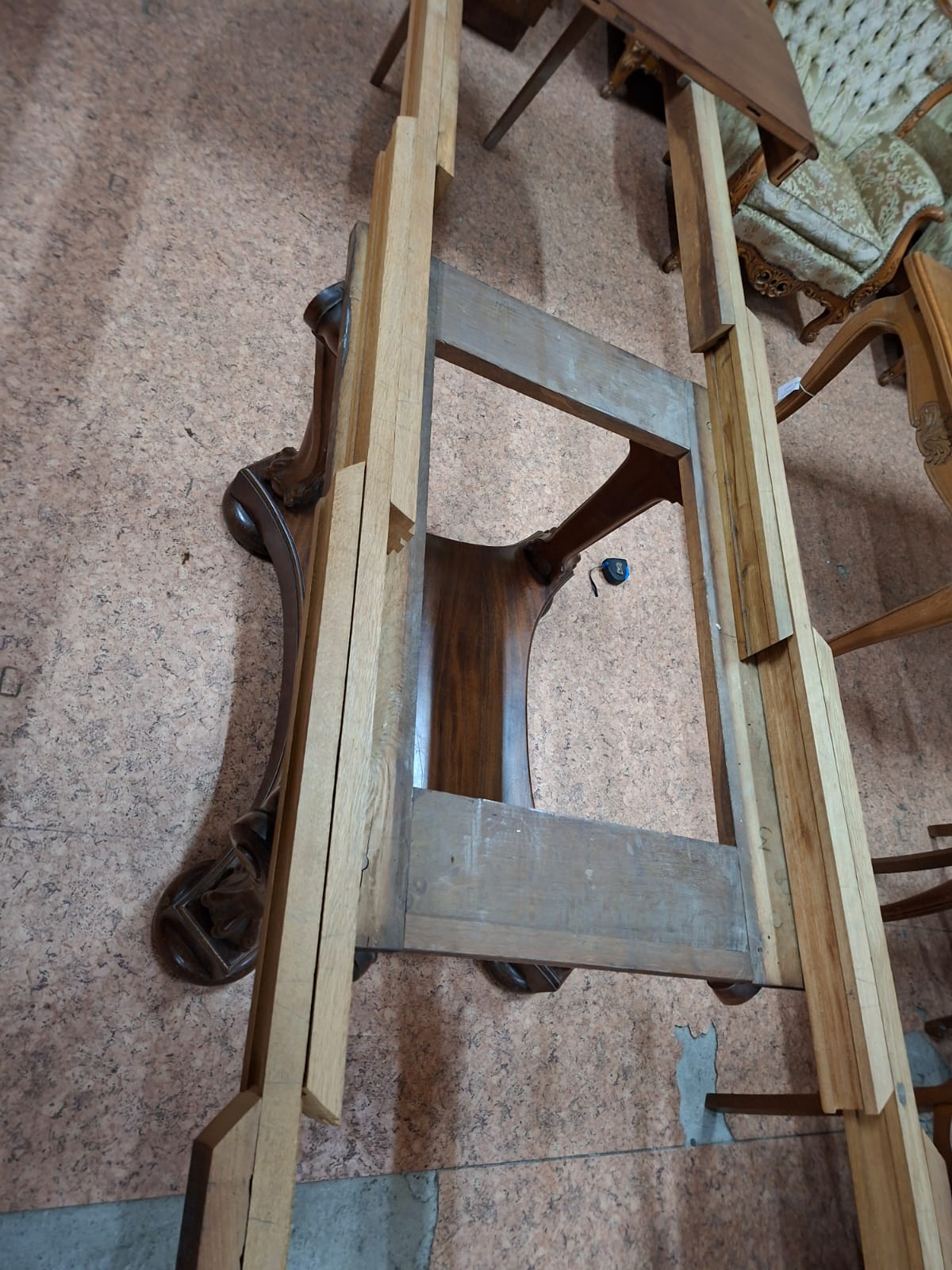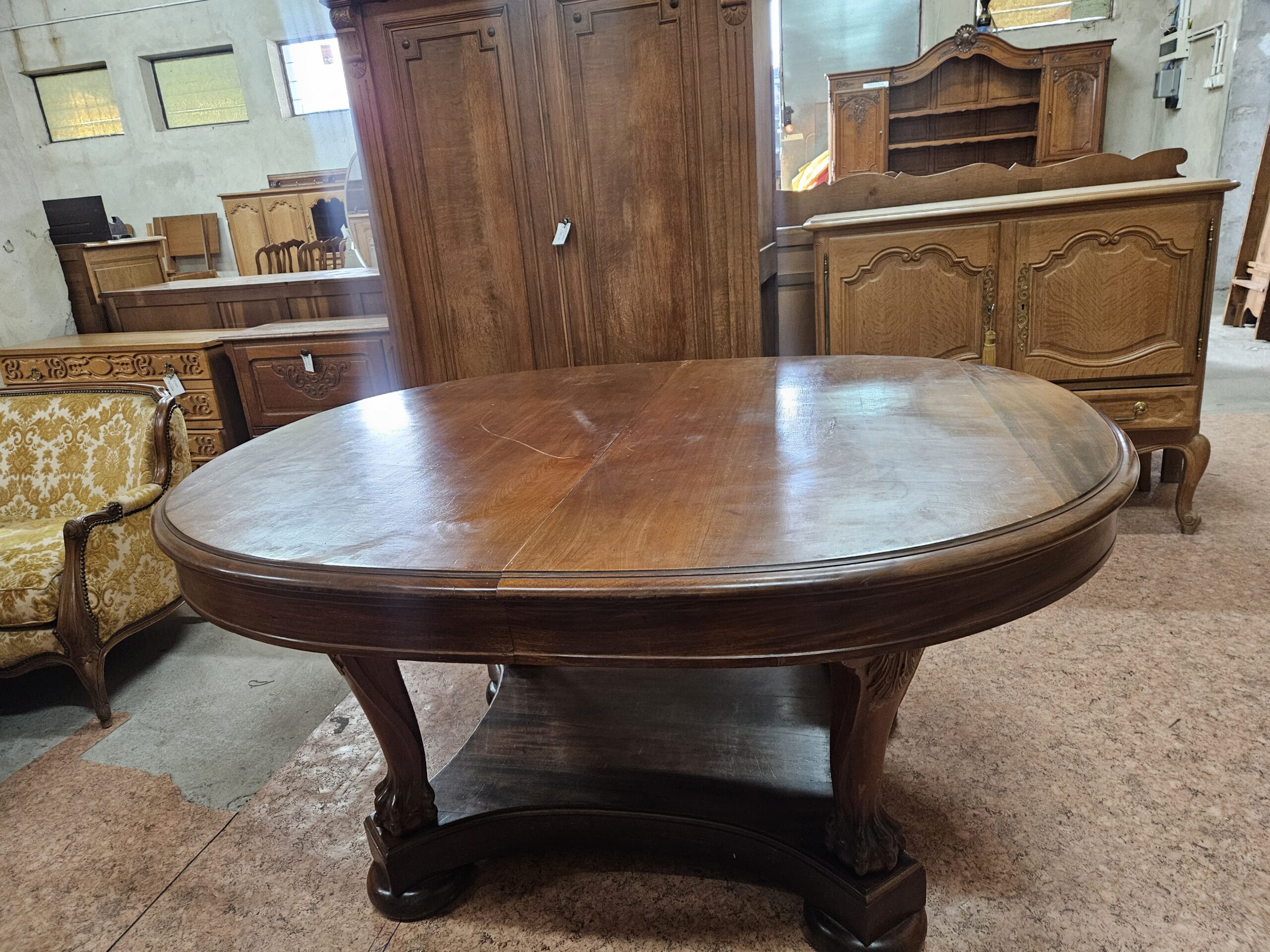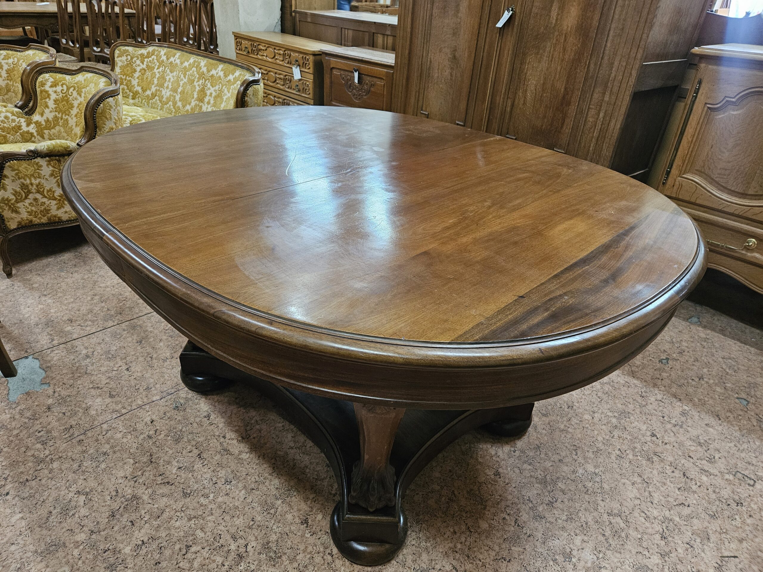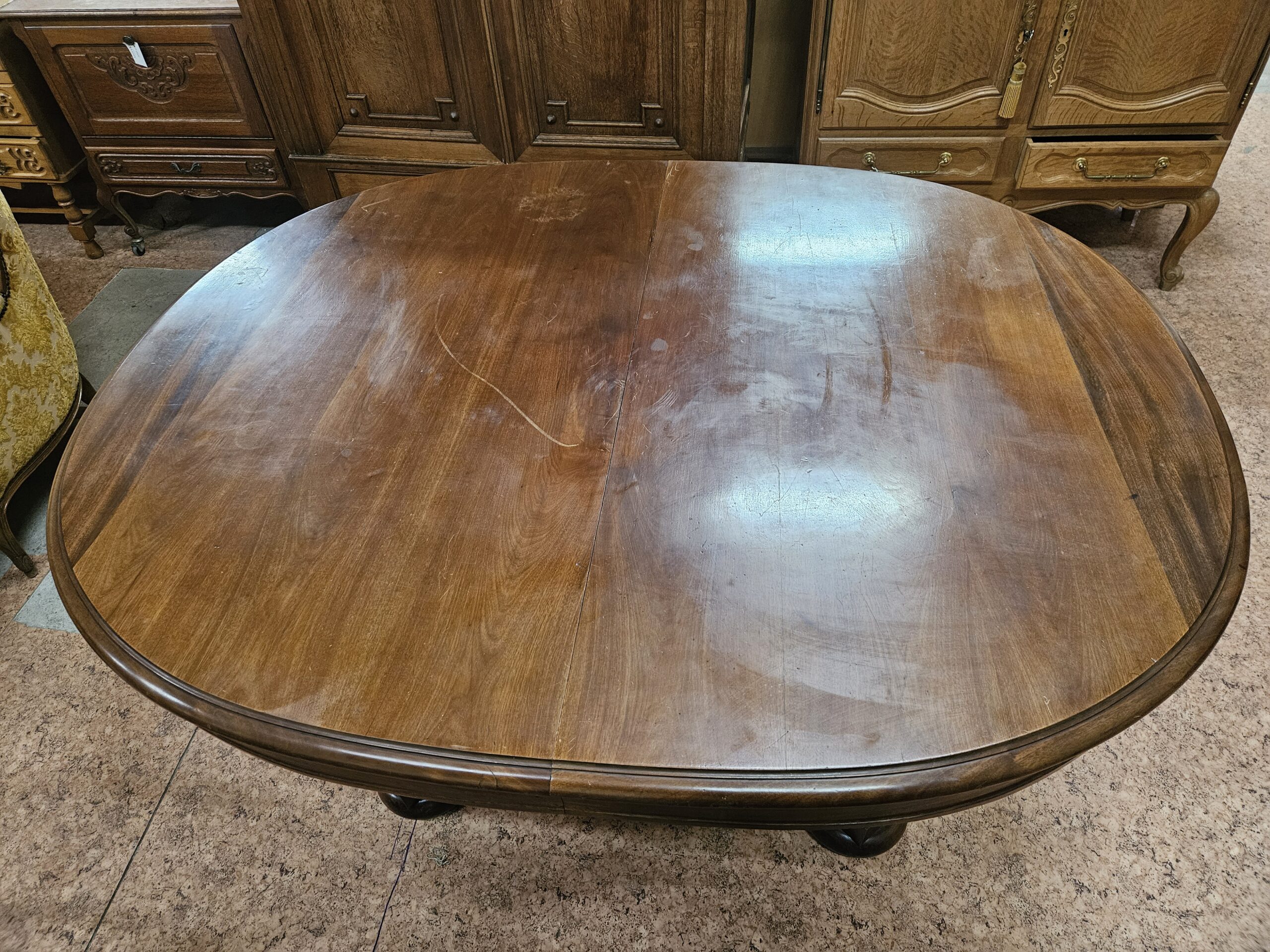 Duży rozkładany stół chippendale. Stan drewna bardzo dobry, nie ma śladów po drewnojadach, bardzo ciężki, masywny i stabilny. Blat nosi ślady użytkowania do odświeżenia, kosmetyki, dla wymagających do renowacji. Stół nie posiada wkładów do środka stołu, do ewentualnego dorobienia we własnym zakresie. Możliwość dostawy lub odbiór w naszym magazynie w Nowym Sączu po wcześniejszym uzgodnieniu