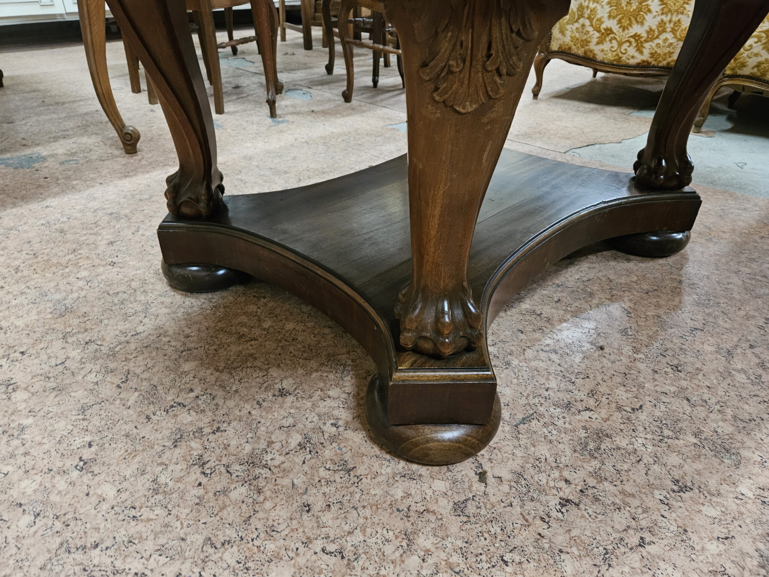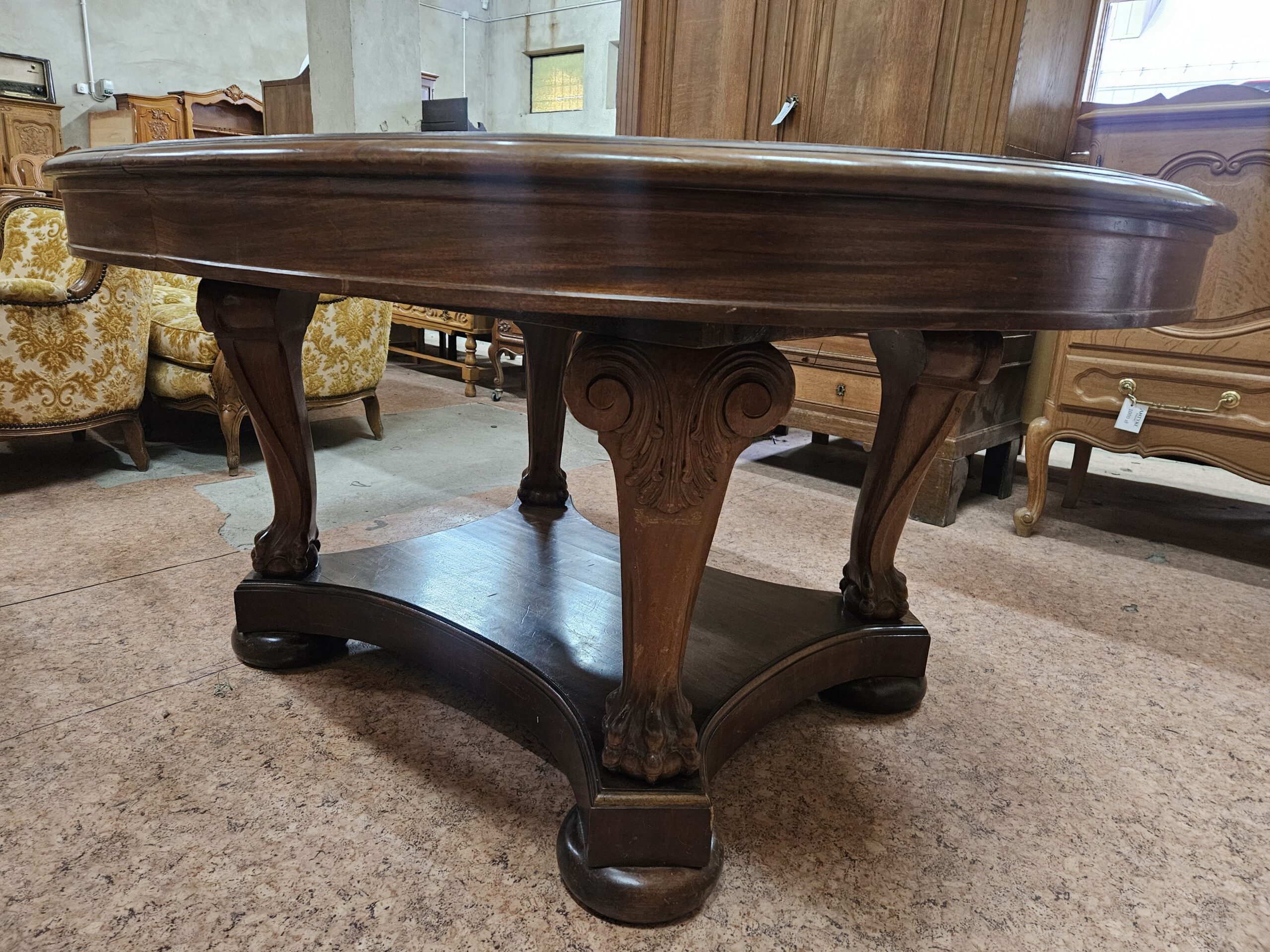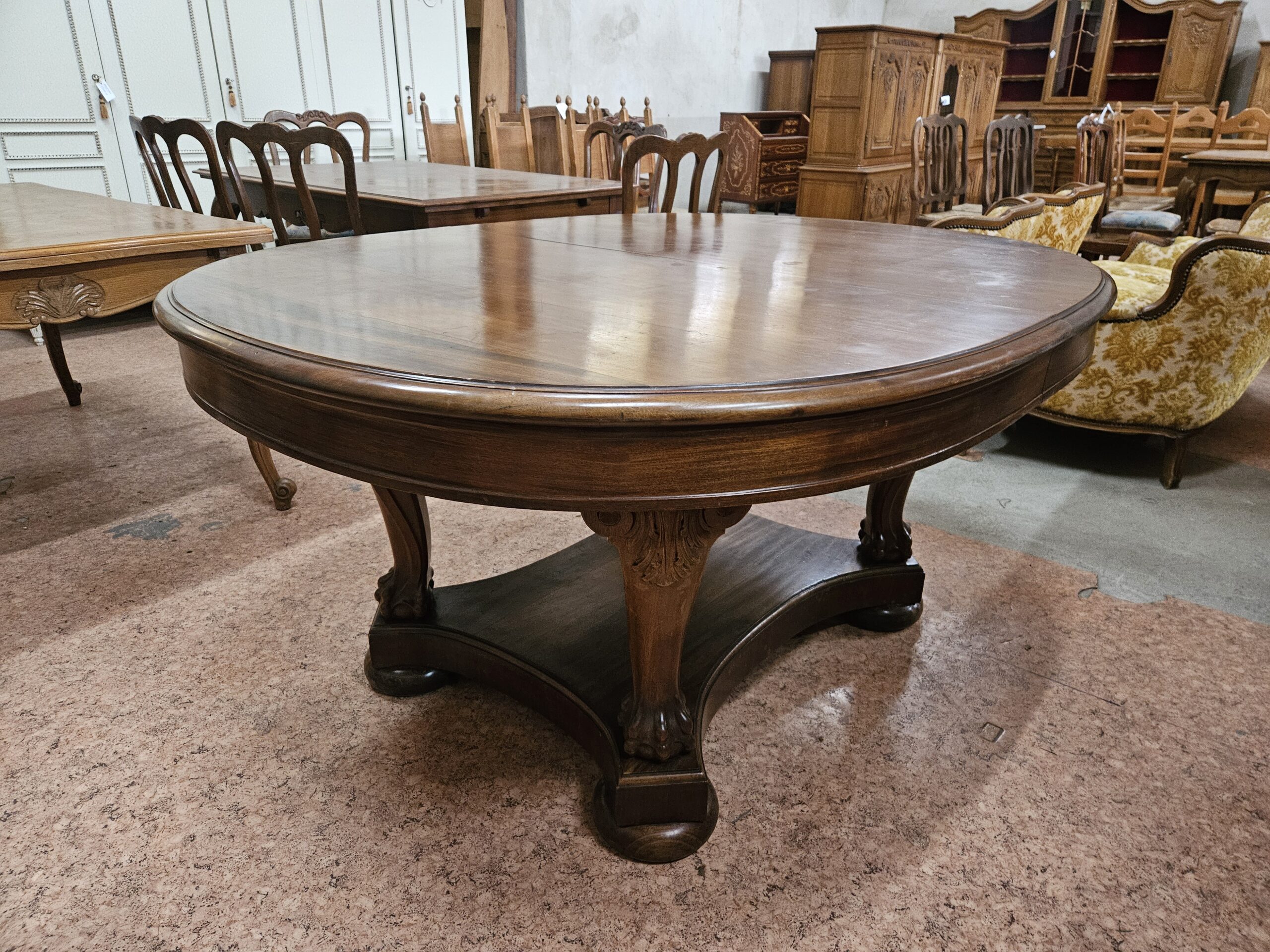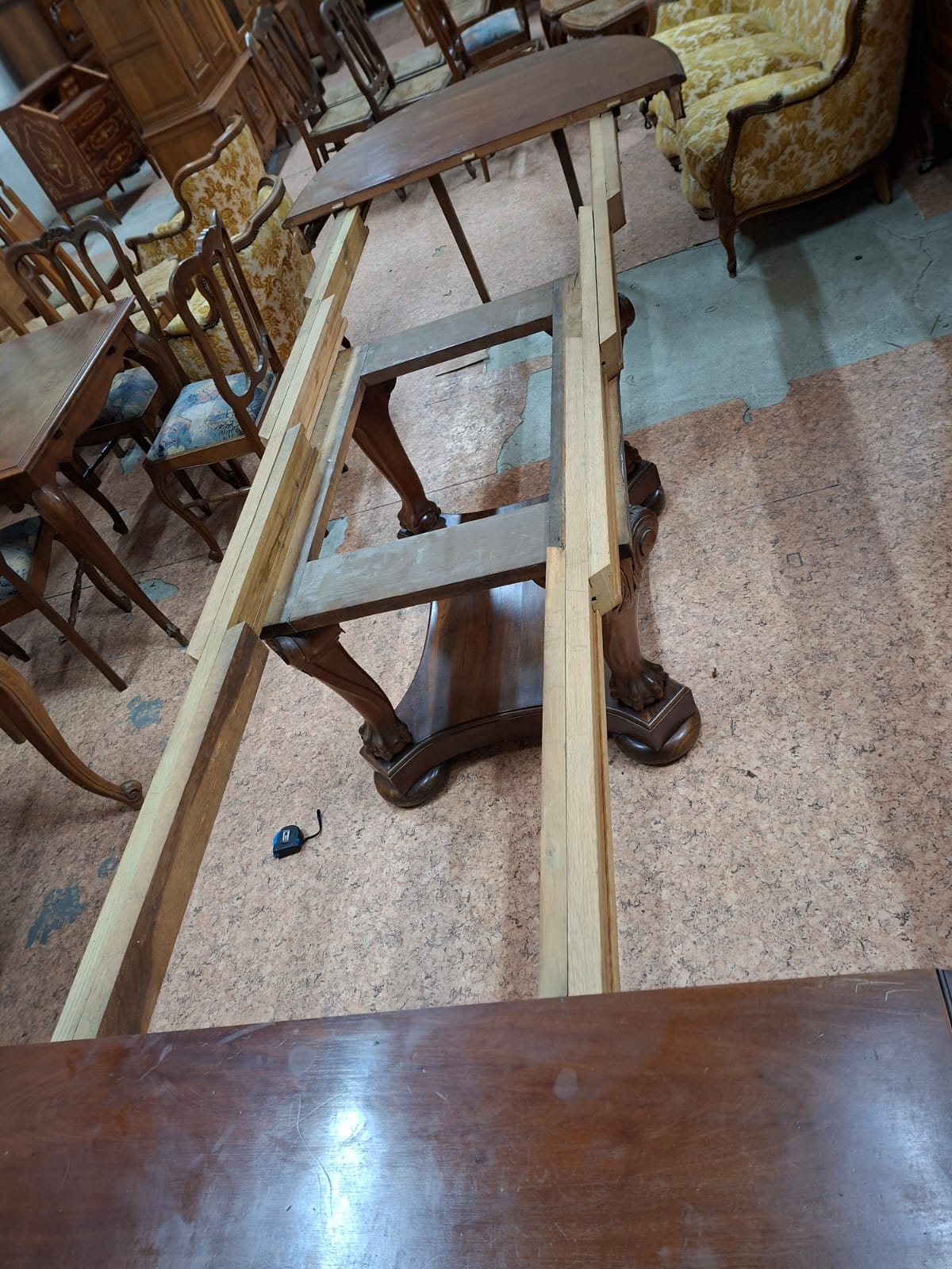 Duży rozkładany stół chippendale. Stan drewna bardzo dobry, nie ma śladów po drewnojadach, bardzo ciężki, masywny i stabilny. Blat nosi ślady użytkowania do odświeżenia, kosmetyki, dla wymagających do renowacji. Stół nie posiada wkładów do środka stołu, do ewentualnego dorobienia we własnym zakresie. Możliwość dostawy lub odbiór w naszym magazynie w Nowym Sączu po wcześniejszym uzgodnieniu