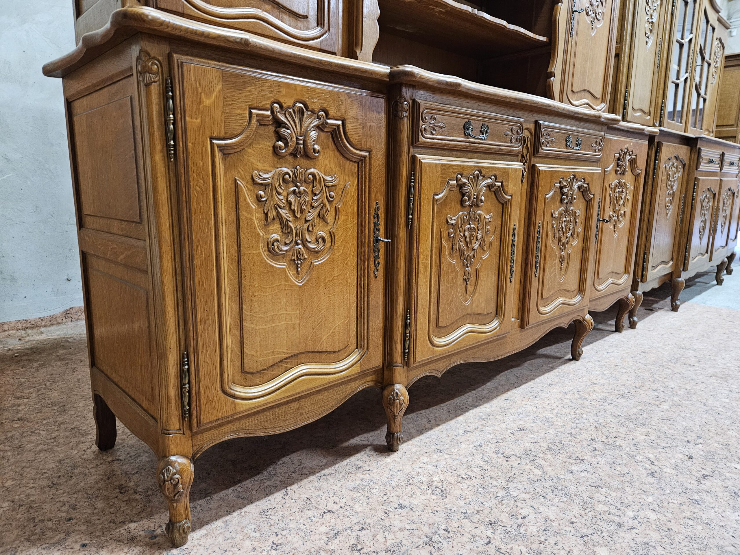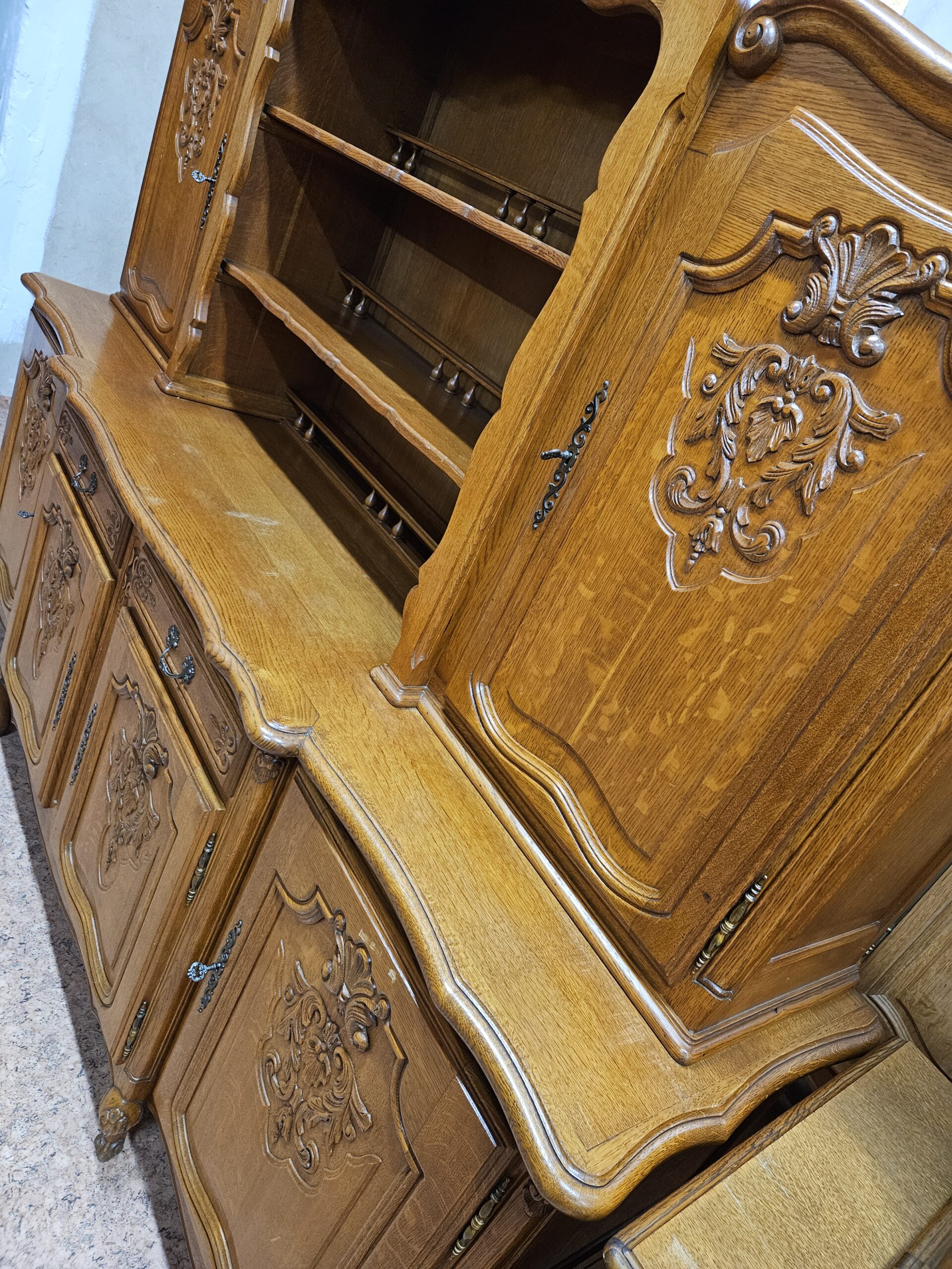 Stara dębowa witryna Ludwikowska rocaille, kredens