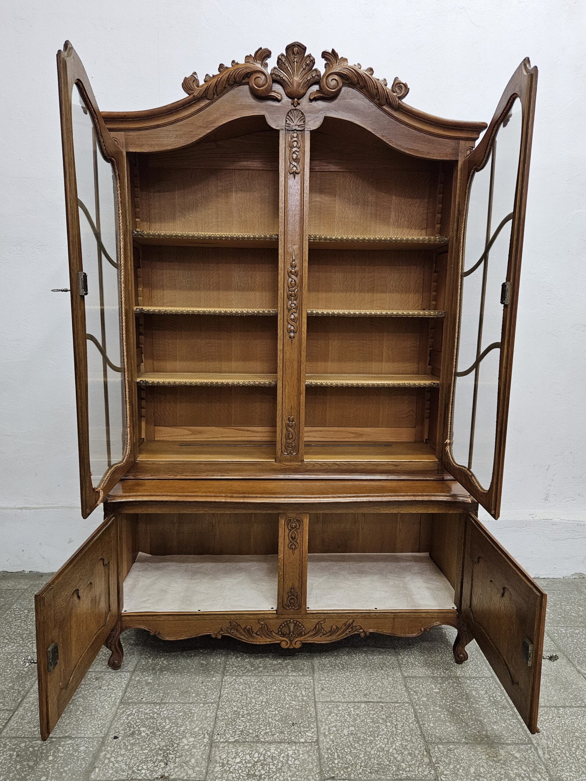 Ładna francuska witryna ludwik w bardzo dobrym stanie. Komplet kluczy w zestawie, zamki sprawne. Witryna dzieli się na dwie części do transportu. Możliwość dostawy lub odbiór w naszym magazynie w Nowym Sączu ul Węgierska 211a po wcześniejszym uzgodnieniu
