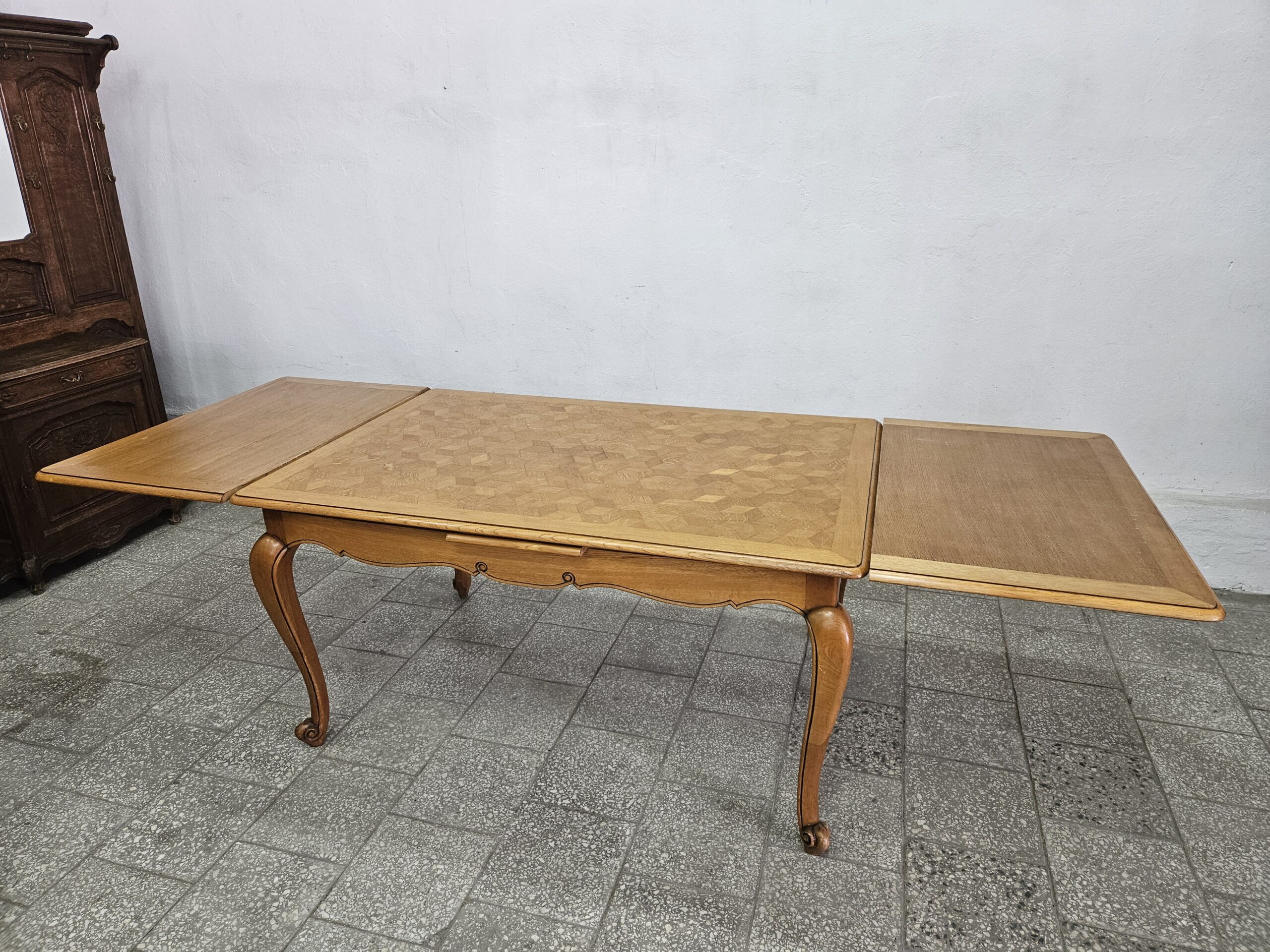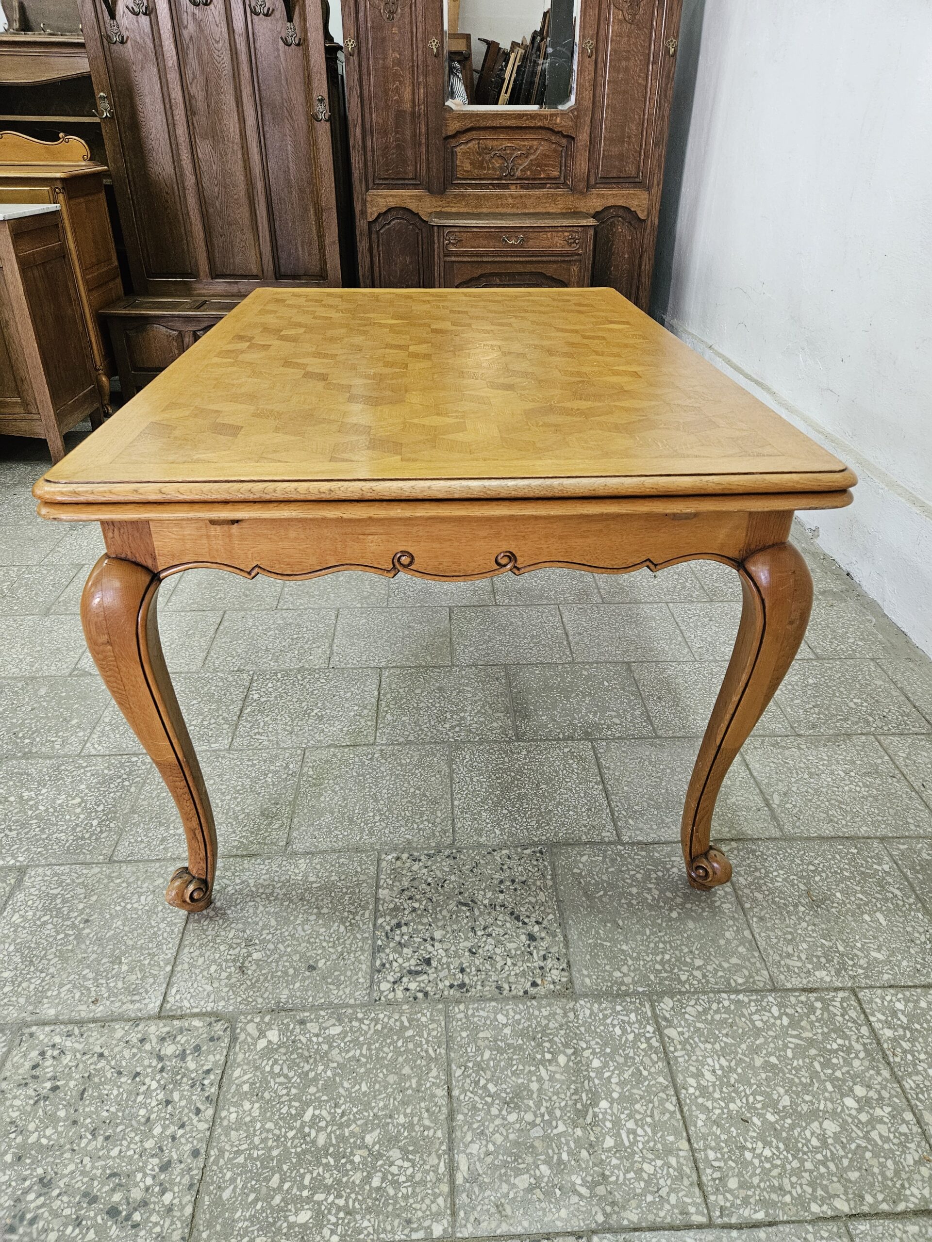 Duży francuski stół rozkładany  w bardzo dobrym stanie.  Możliwość dostawy lub odbiór w naszym magazynie w Nowym Sączu po wcześniejszym uzgodnieniu.