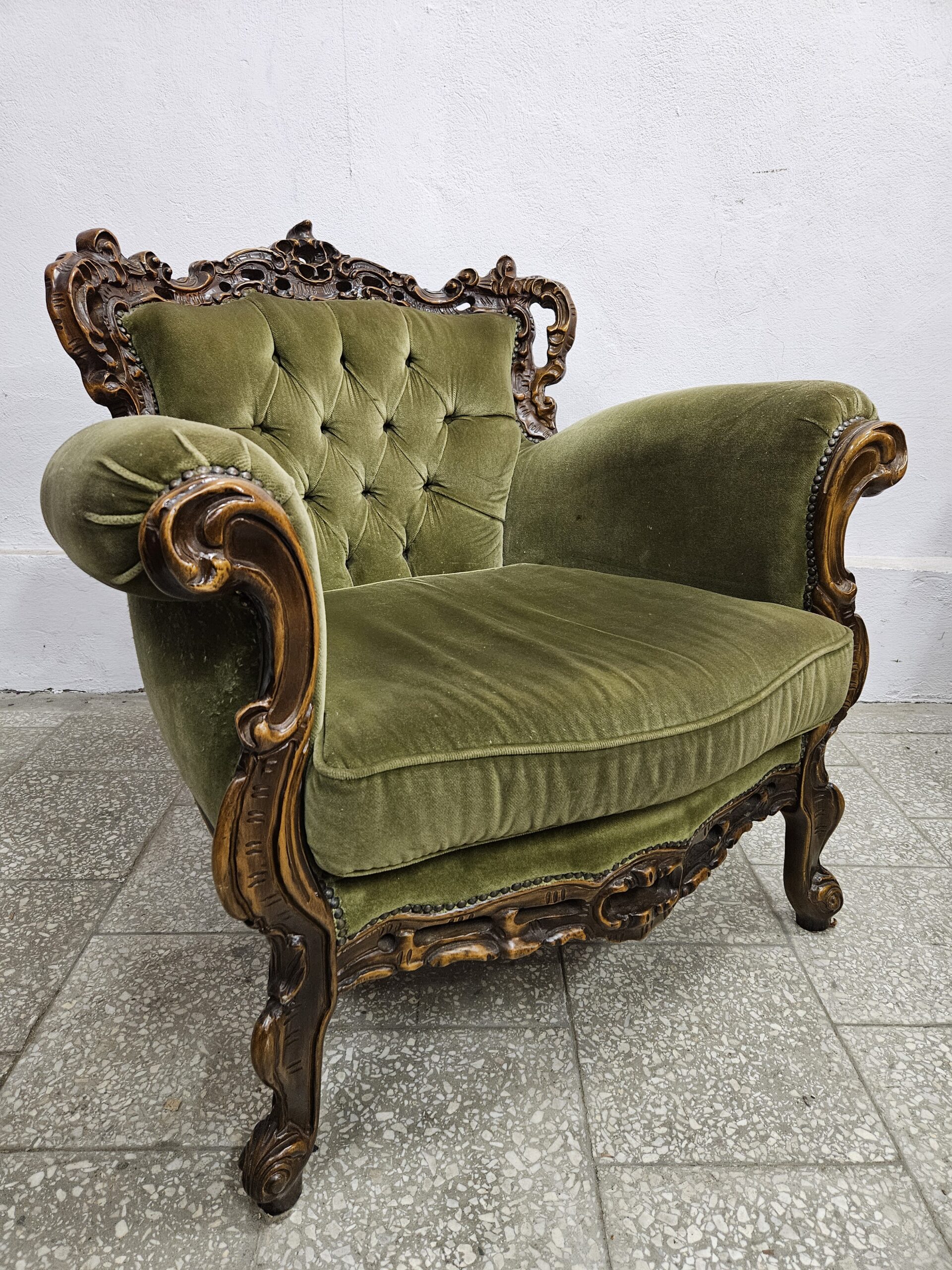 Ładny stary ludwikowski komplet wypoczynkowy w dobrym stanie. Ślady użytkowania widoczne na zdjęciach. Meble bardzo ciężkie masywne, konstrukcja stabilna. Ramy bogato rzeźbione w bardzo dobrym stanie. Drewno bez śladów po drewnojadach. Tapicerka oryginalna nosi ślady użytkowania: miejscowe przetarcia, małe rozdarcia w trzech miejscach (niewidoczne) można użytkować w takim stanie. Możliwość dostawy lub odbiór w naszym magazynie w Nowym Sączu ul Węgierska 211a po wcześniejszym uzgodnieniu