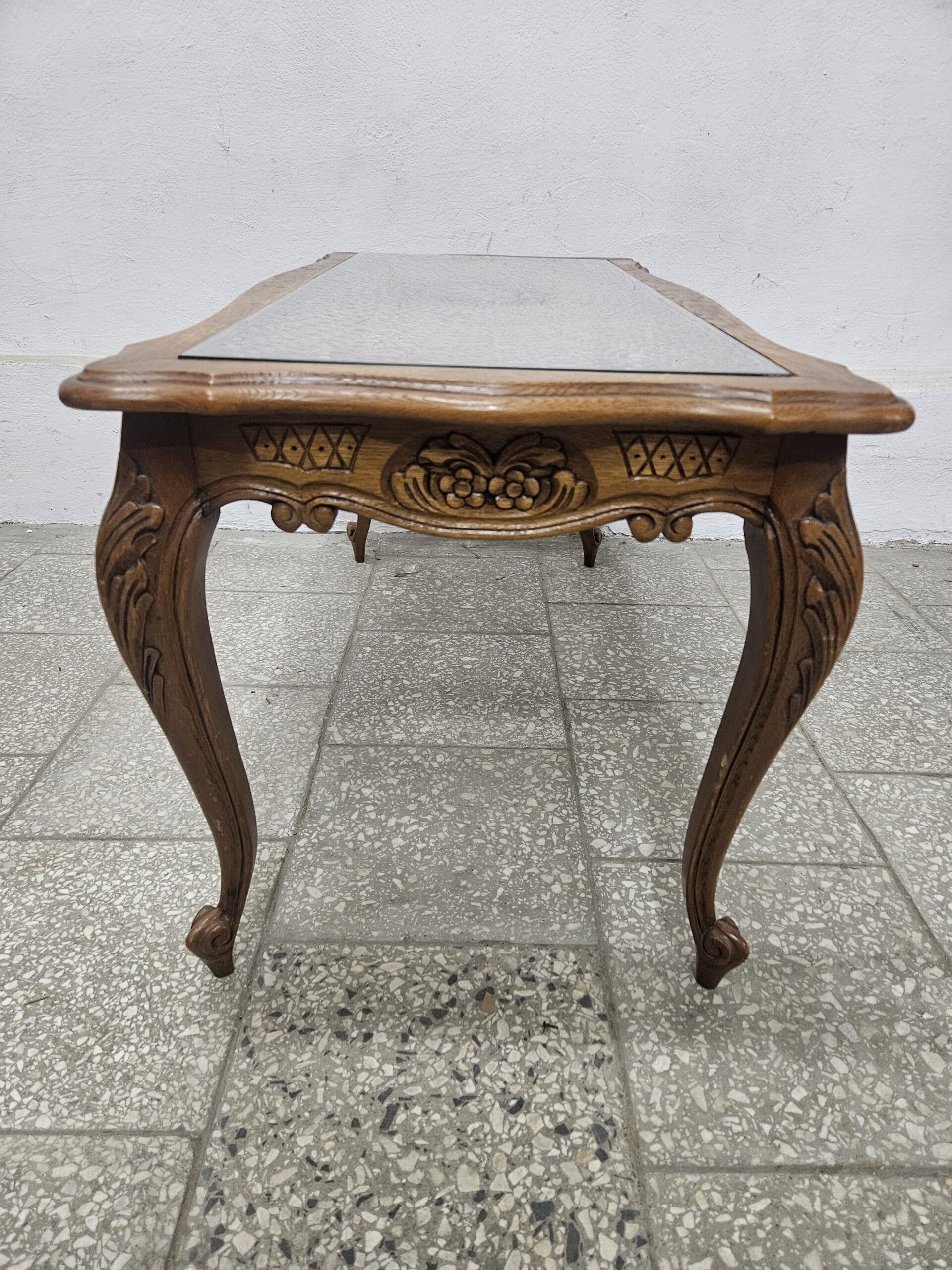 Bogato rzeżbiony ludwikowski stolik z rafią i szybą w bardzo dobrym stanie. Możliwa dostawa lub odbiór osobisty z naszego magazynu w Nowym Sączu po wcześniejszym uzgodnieniu.
