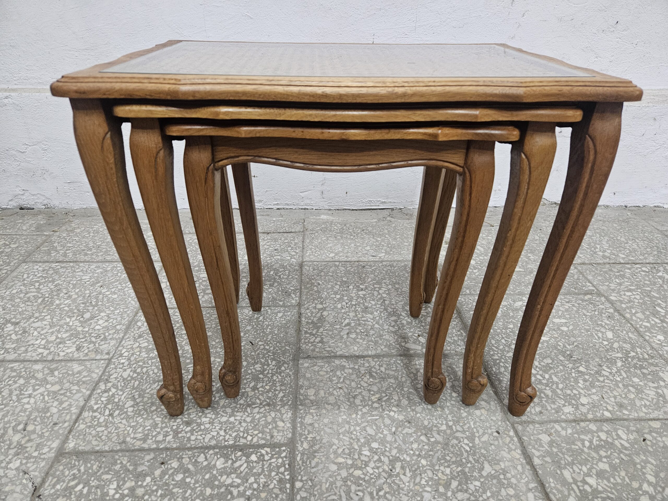 Ludwikowskie stoliki trojaki  z rafią i szybą w bardzo  dobrym stanie. Możliwa dostawa  lub odbiór osobisty z naszego magazynu w Nowym Sączu po wcześniejszym uzgodnieniu.