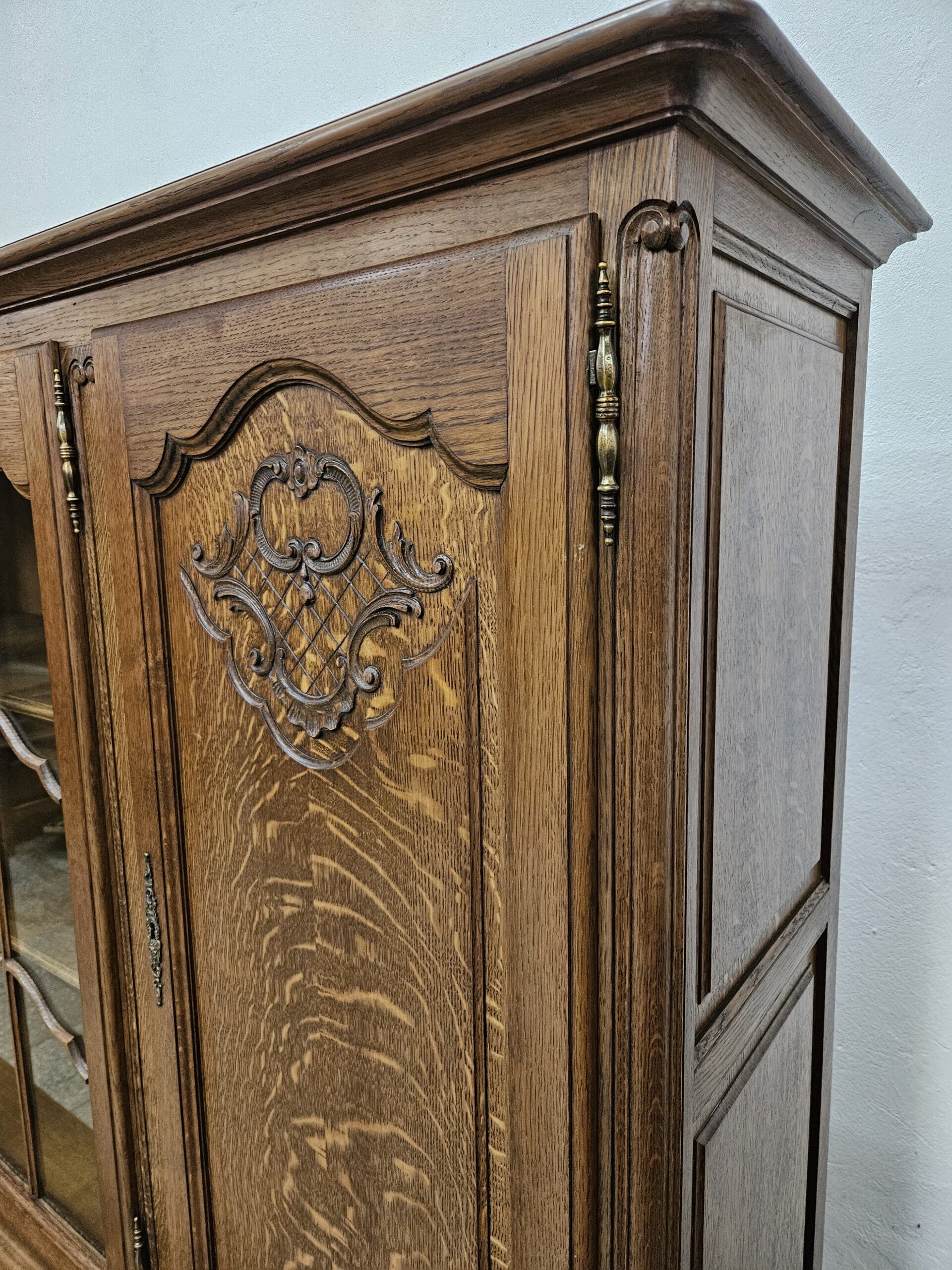 Stara dębowa biblioteczka eklektyczna z witrażem Francja