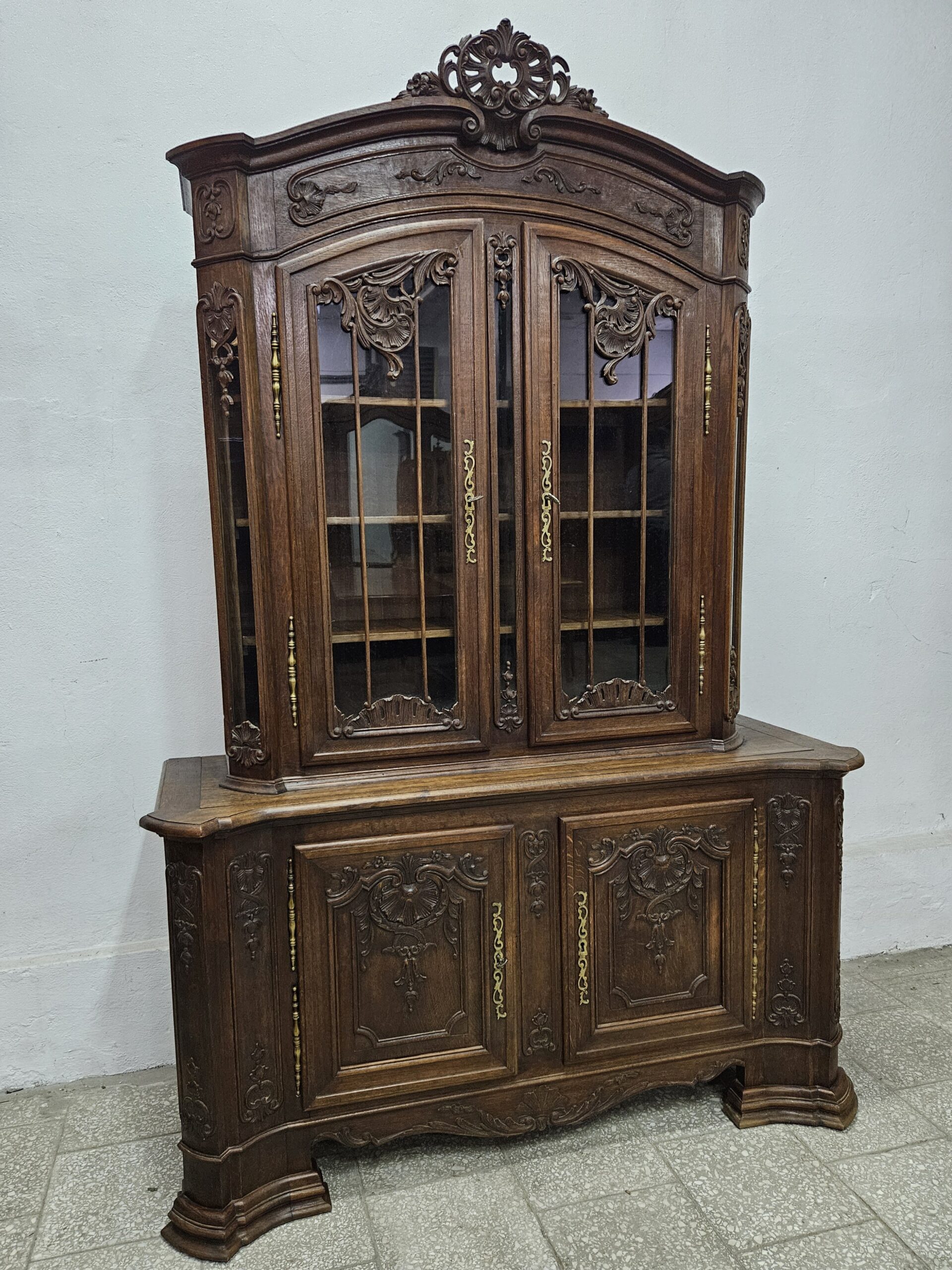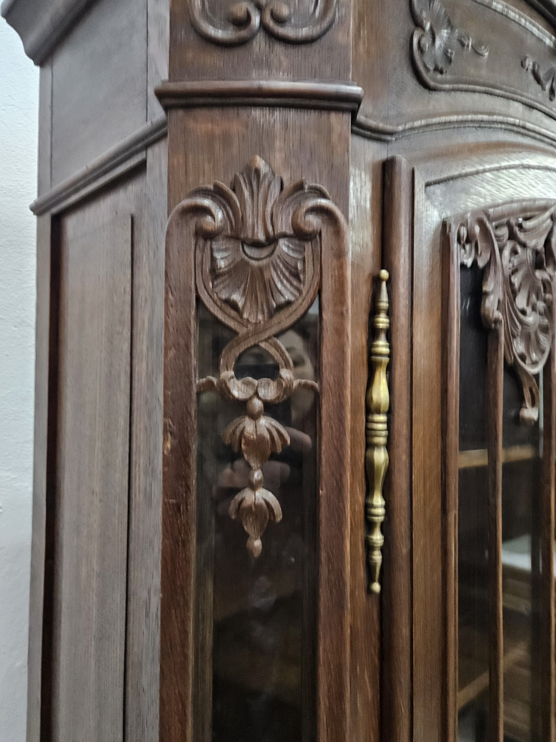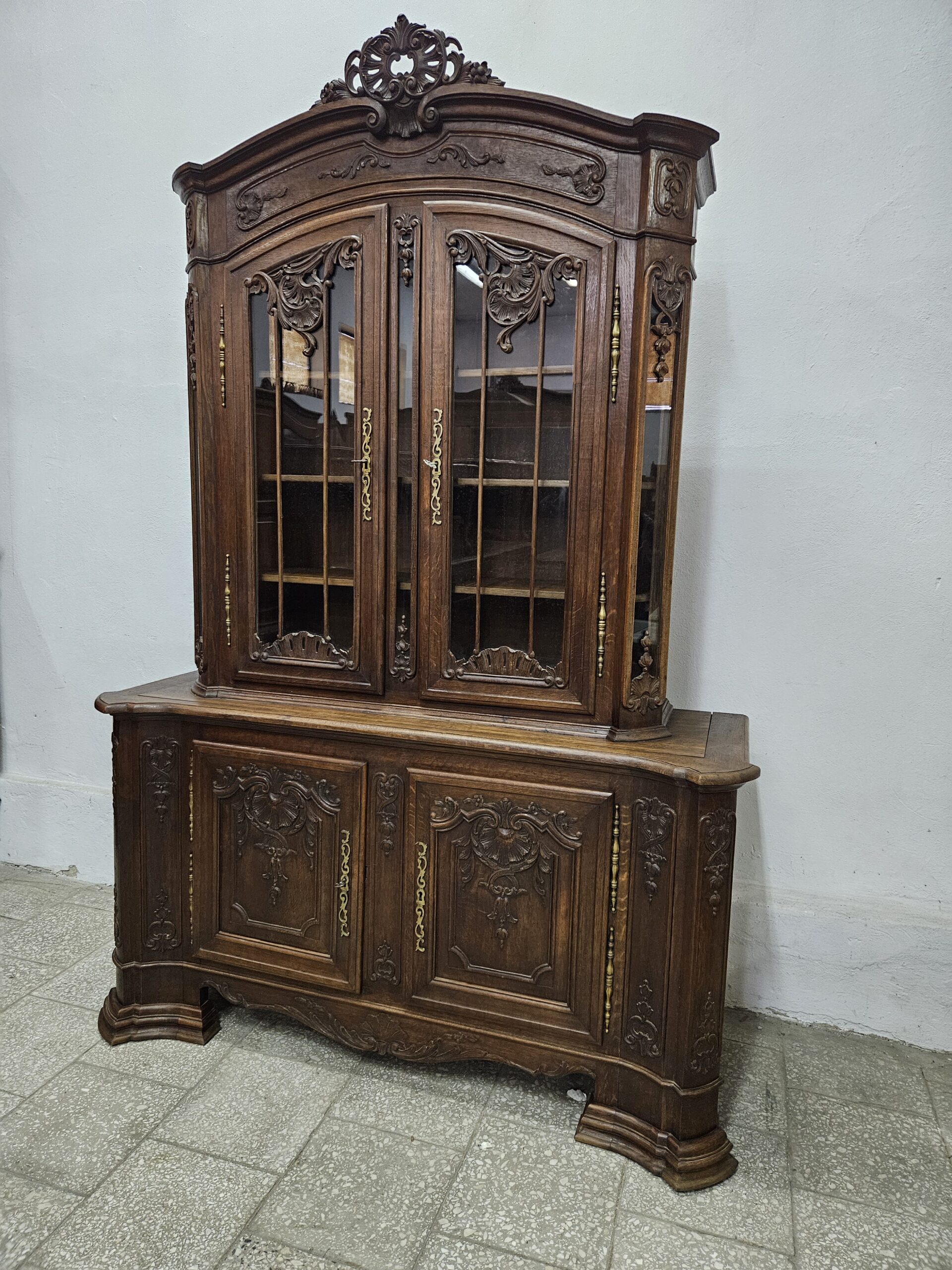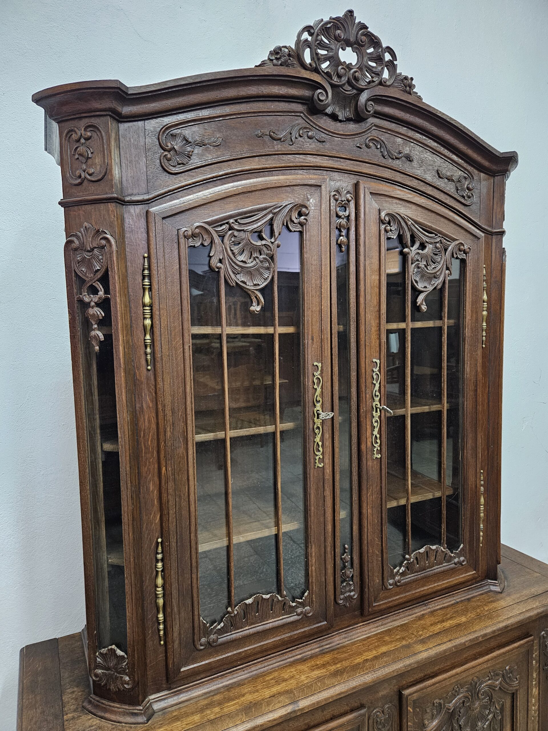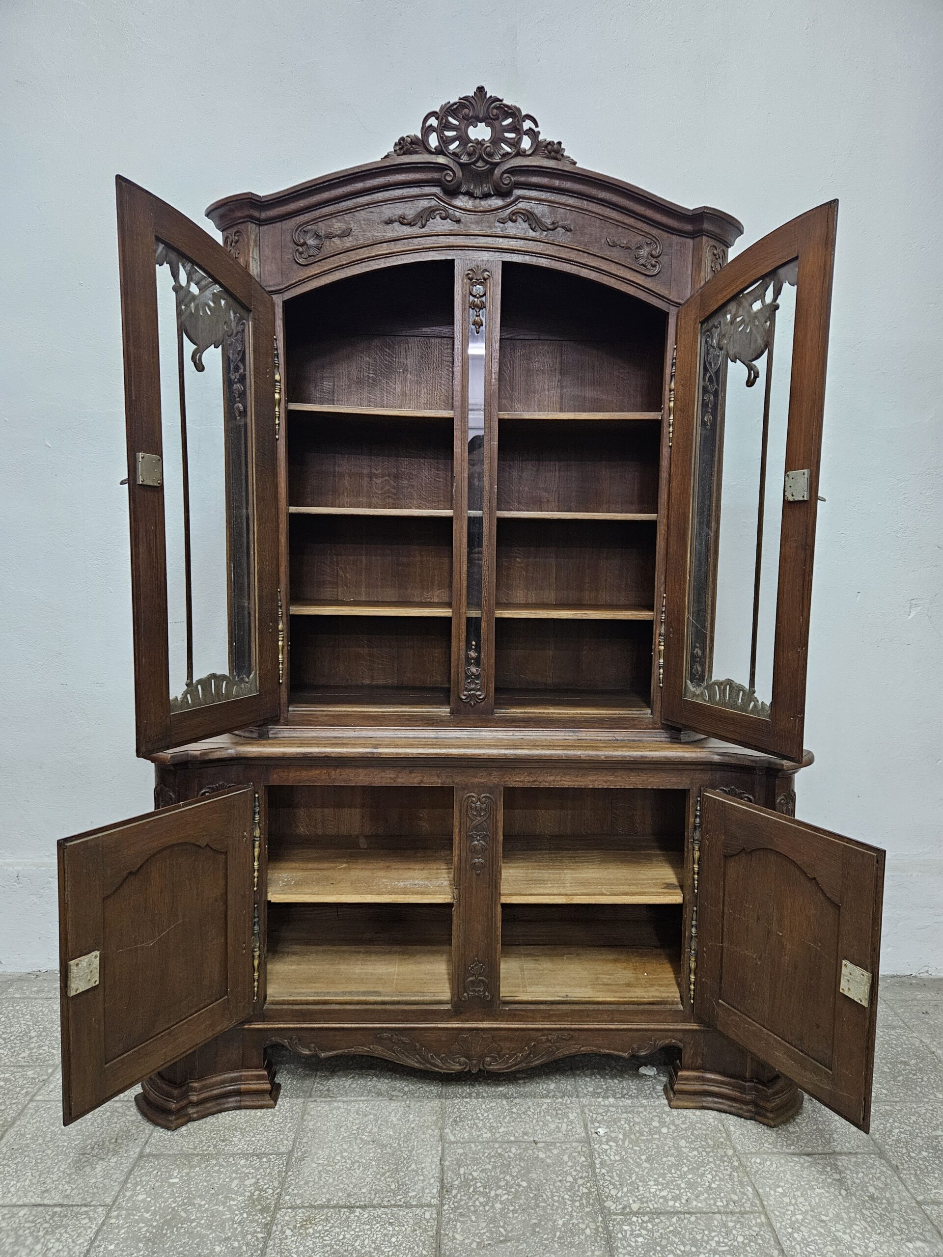 Stara dębowa witryna Ludwikowska rocaille, kredens