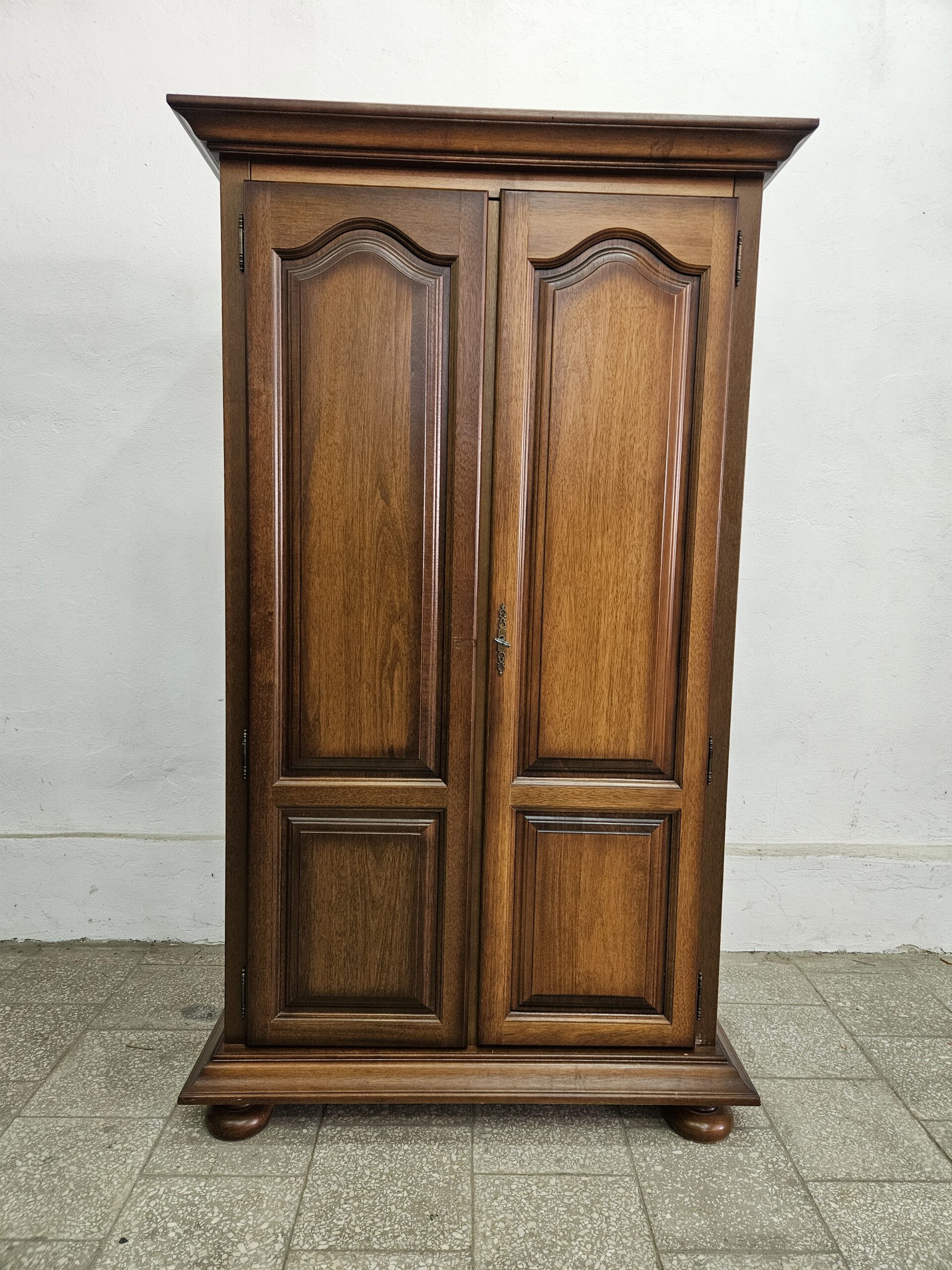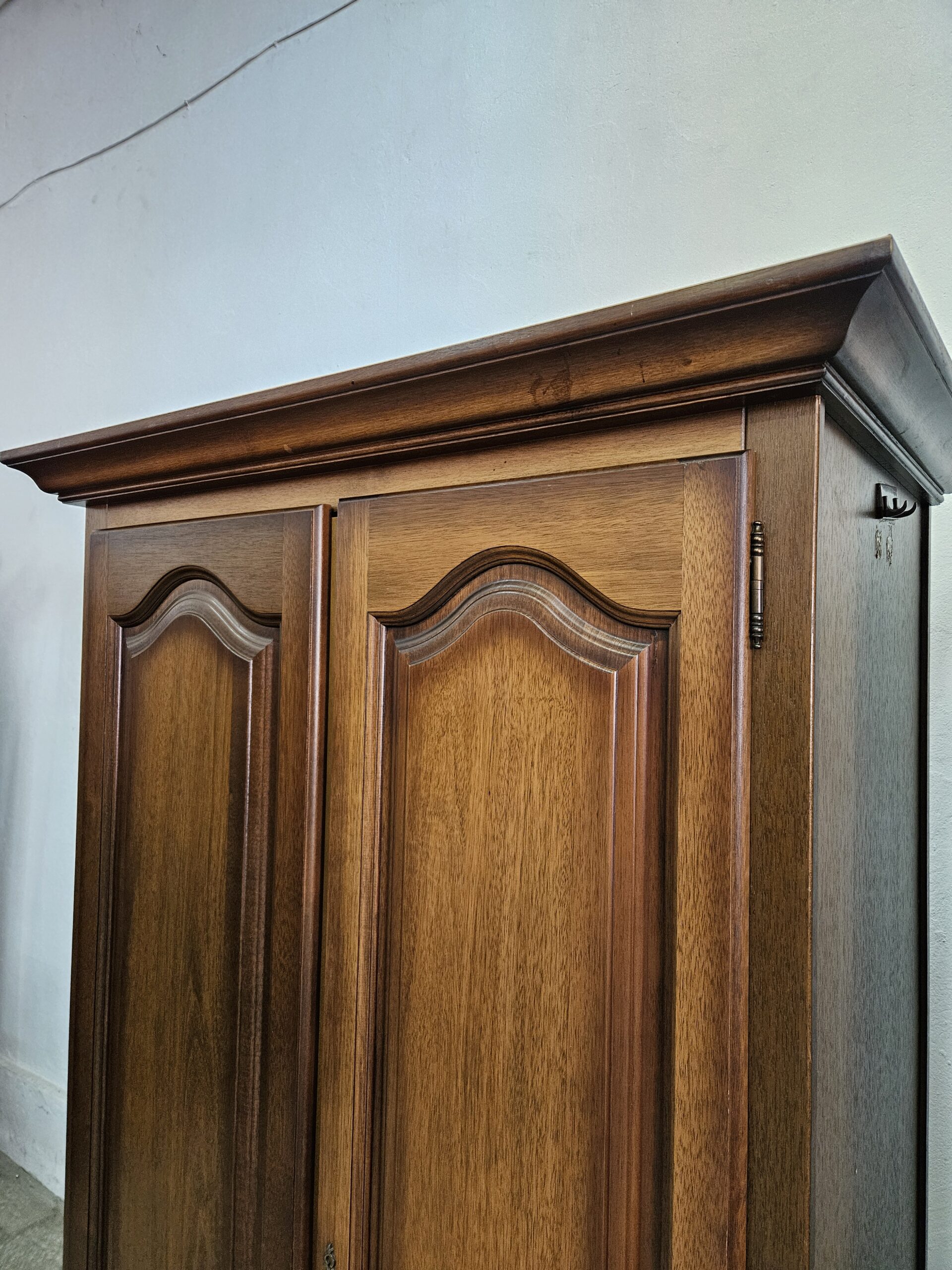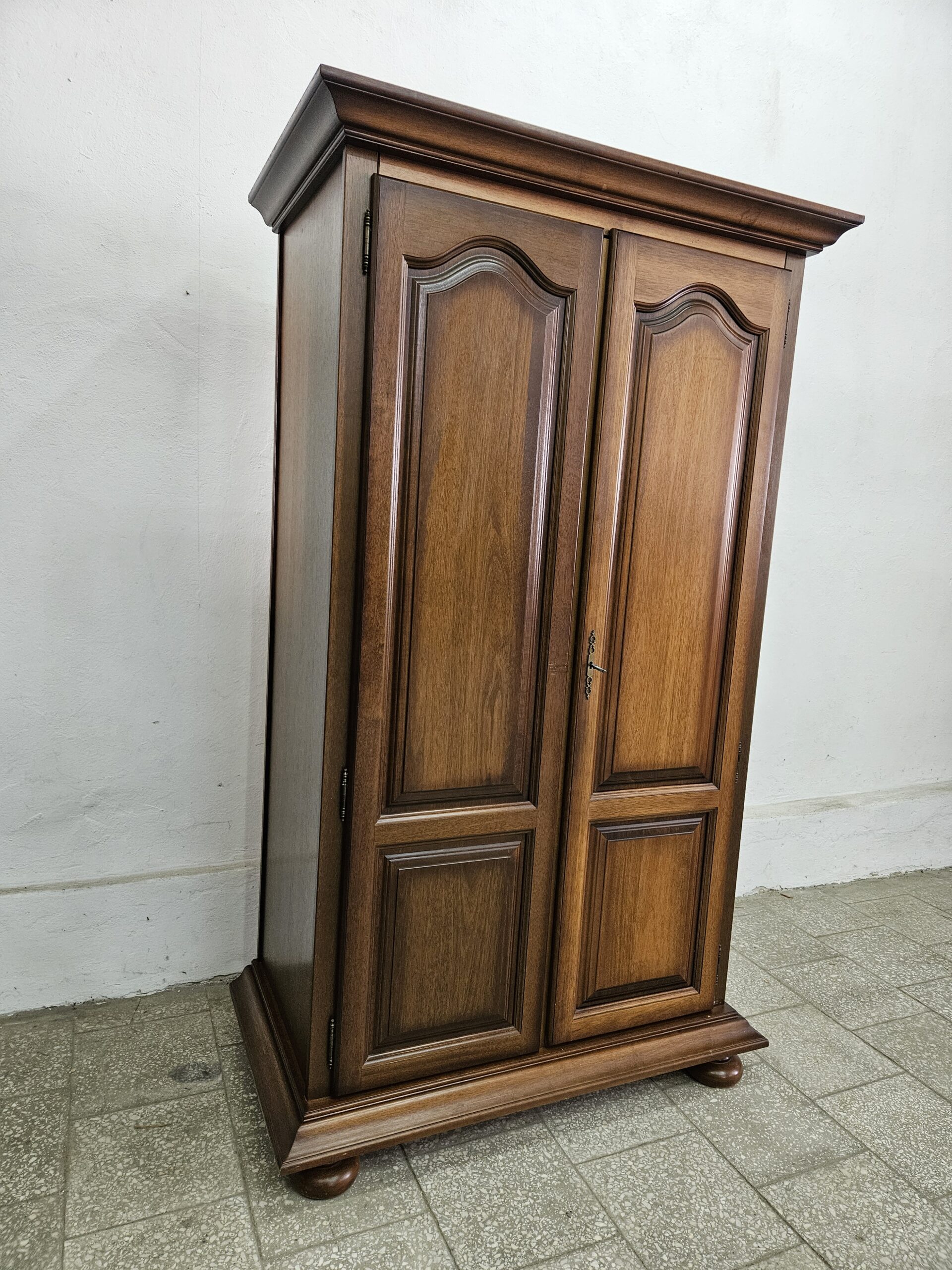 Stylowa szafa z drążkiem na wieszaki. Mebel w dobrym stanie, nadające się do użytku. Doskonałe rozwiązanie do przechowywania odzieży i akcesoriów. Klucze w komplecie, zamki sprawne. Szafę można rozkręcić do transportu. Wnętrze czyste bez zapachów. Możliwość dostawy lub odbiór w naszym magazynie w Nowym Sączu po wcześniejszym uzgodnieniu. W innym ogłoszeniu druga taka sama szafa z półkami i wieszakiem na ubrania.